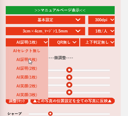 証明向けの無表情写真を選択するのであれば「AI証明(〇枚)」を
