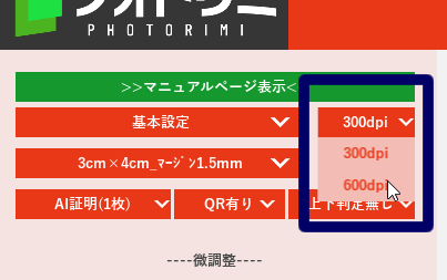 初期の選択肢は[300pi][600dpi]ですが、こちら編集可能になっております。