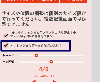 【トリミング済みデータを配置のみ行う】にチェックを入れます