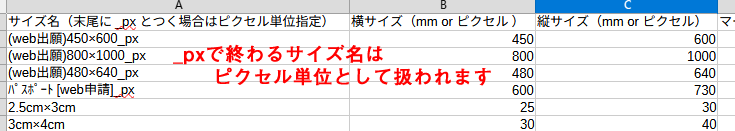 通常はミリメートル単位していとなりますが、サイズ名の末尾に「_px」とつけた場合には、設定内容をピクセル単位として扱います